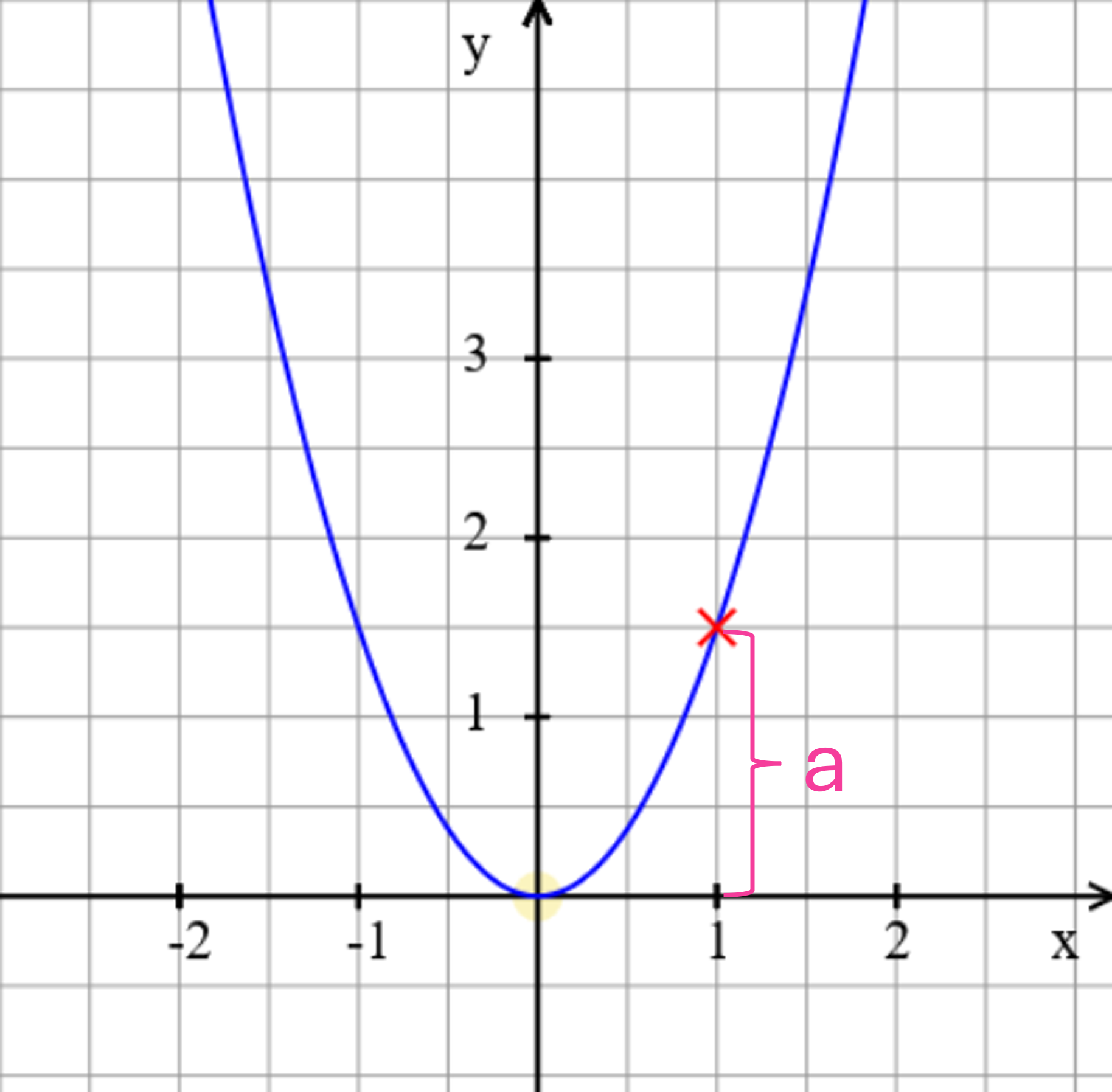 Eine Funktion der Form y = ax2 nimmt für x = 1 den Wert a an. So kannst du den   a aus dem Graphen erkennen.